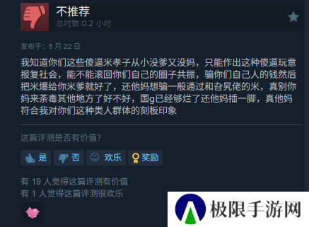 接下来的发展不用想也知道,疯狂的差评和对作者的问候接踵而至,甚至该游戏因一些不明原因导致无法在steam上购买。(V社你做的好啊)