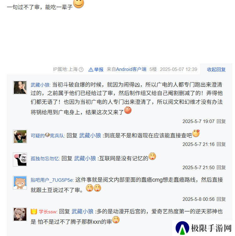 主要是之前“香艳场景”那次官方也是用的“不过审”这个理由,但作为斗破苍穹姊妹小说《武动乾坤》动画中也有相似片段,这可没因为审核而被删减略过(你别问为啥都有这种片段,问就是土豆恶趣味)