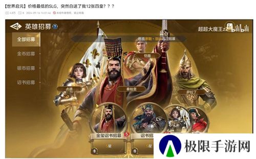 同样被震惊到的,还有各大SLG游戏领域的KOL。在B站上有着数万粉丝,被称为“SLG游戏超级大R”“著名硬核SLG玩家”“联盟盟主”的UP主“超超大魔王zZ”,就是其中之一。为了验证这次福利的真实性,他甚至专门出了一个详细的抽卡视频来现身说法。视频中,经过他亲自全方位地展示了,这次新增抽卡机制的各种细节,并用六张金玺诏书达成期待已久的四圣卡“全面红”的成就后,他和屏幕前的玩家们,都无一例外地被《世界启元》官方“一切为了玩家”的敬业态度所折服。