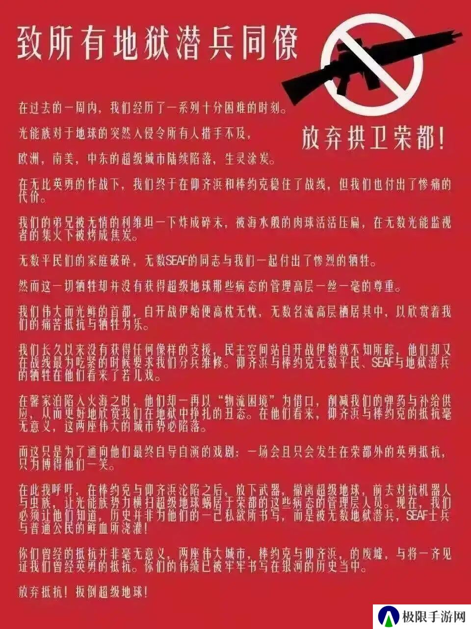 至此中美会师上海,共同抵御光能族与腐败无能的超级地球内鬼**(指箭头)!此外本次战略转移时还有非常感人的一幕,一部分美国潜兵表示:“你们去保卫上海是对的,但总得有人留下来战斗到最后一刻,即使纽约一定会陷落。”