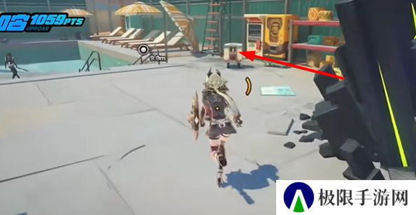 4、最后来到下图为位置,按照箭头指示的方向前进,可以在角落里获取一个宝箱