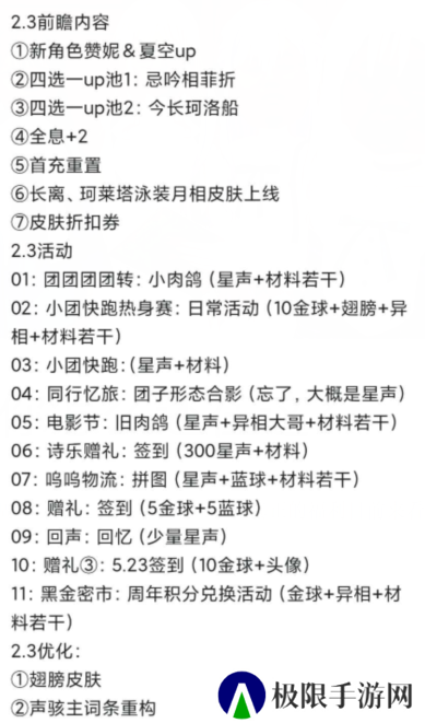 其实不仅仅是前瞻之前的爆料有这种无限拉高玩家期待的趋势,前瞻直播当中这种手法更是演都不演了。当公布完几乎所有内容后,主创们还在一个劲的暗示:“后面还有大的”结果大的是什么呢?他们告诉我大的是“2.3之后是2.4”