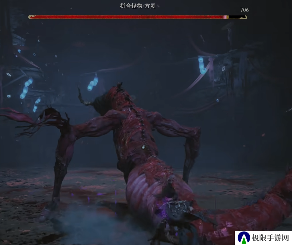 而到了Boss第二阶段,制作组的文本水平更加暴露无遗了,居然叫“拼合怪物”........这个完全就是瞎取名了,于是我又请除了万能的DeepSeek,他给出了:“渊疽·骨舆辇”“腐嫁衣·百祟脐”“ 孽海雷骸佛”等答案,虽然可能也不太合适,但无疑都比原本的名字好。