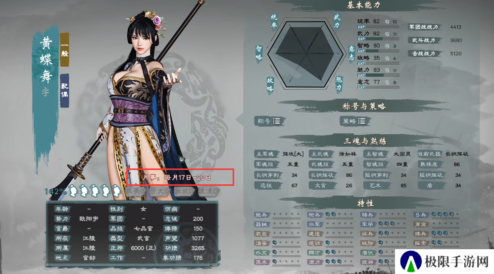 有了这个数据玩家就能计算出每个女武将的排卵期,排卵期的计算方式为月事开始后往后加15天,只要在排卵期期间行房事,受孕的概率就会非常的高,具体到游戏里就是这些女武将会对玩家说出“妾身算着日子,现在那个可能会把肚子闹大的”这样的话。