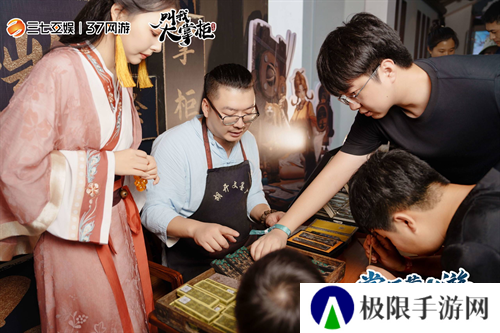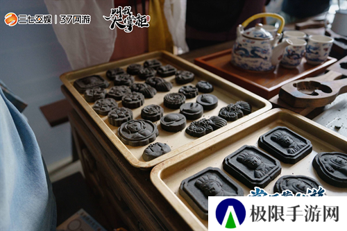 其中,五大摊档互动游戏完美融合了游戏的士农工商侠职业。而里面的农、工摊档更是与徽派非遗紧密结合,在农职业茶肆摊档的徽雕糕环节中,大家跃跃欲试,纷纷动手参与制作这一传统美食。从原料准备揉团、刻模到脱模,每一个环节都充满了乐趣。