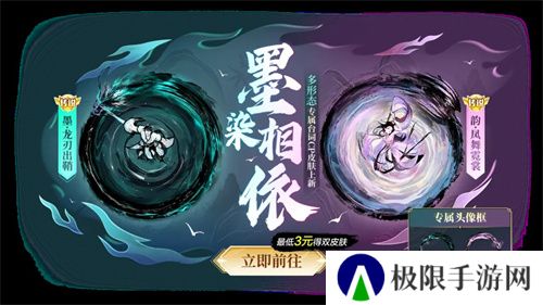 参与通行证抽奖,还有机会获得墨染相依多形态 CP 关键词「韵·凤舞霓裳」、「墨·龙刃出鞘」。黑白交织,光暗闪耀,最低3元即可解锁绝美古风画卷。