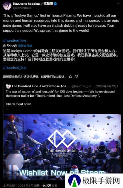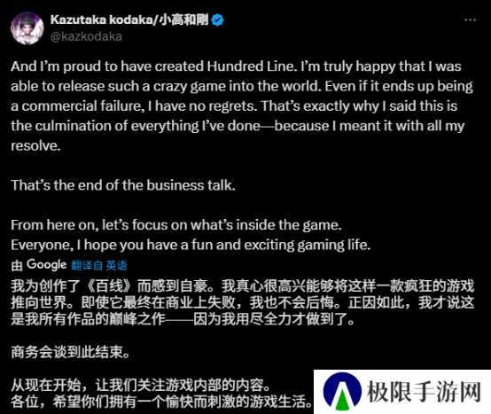 只不过后来他还是逐渐接受了游戏在商业上失败的现实,但是该说不说小高的心态倒是挺好的,依旧对自己能做出《百日战纪》这款游戏而感到自豪,简单的寒暄过后,又回到了默默宣传游戏的状态。