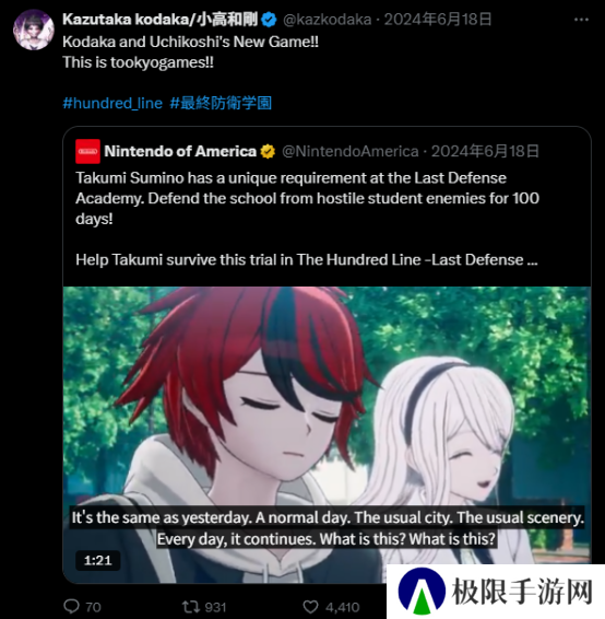 上个月一款叫《百日战纪 -最终防卫学园-》(简称《百日战纪》)的游戏在PC和NS平台正式发售。