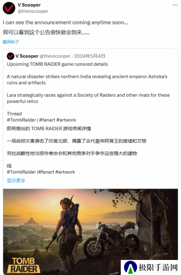 什么?劳拉真要闯印度了?舅舅党the vscooper在去年5月爆料,称《古墓丽影》的新作是“完全的开放世界”,剧情背景设定在印度:古代皇帝阿育王的遗址和文物因为一场自然灾害显现于世,劳拉将和其他对手争夺这些强大的遗物。而就在最近,这位舅舅党转发了推文并再次表示,“我们很快就会看到新作的公布”,看起来似乎有进一步的印证。结合近期的游戏展会信息,也许这款《古墓丽影》新作会在夏日游戏节,或者是Xbox直面会上亮相。