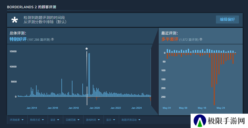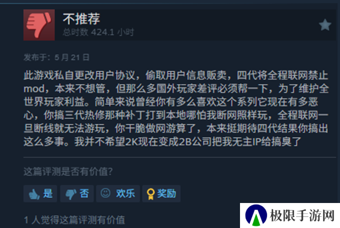 值得一提的是,在前段时间Take-Two更新了新的终端用户协议,该协议会允许系统获取玩家根目录的访问权限,存在数据泄露的潜在风险,说是希望所谓的真爱粉为游戏买单,但是实际执行下来却又不把玩家当人看,在双重debuff的加持下,《无主之地》全系列的近期风评全都降为了多半差评。