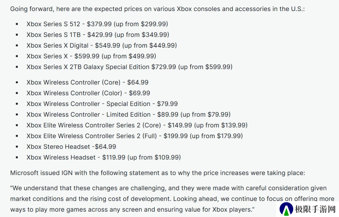 好家伙,这一边微软可就高兴了,自己老早就想涨价了,一直找不到好借口,见到老伙计做出表率,微软这边立马闪现跟团,宣布从25年圣诞起Xbox上的游戏也要调整至80美元区间,甚至已经发售5年的两款游戏机也迎来了大规模涨价。