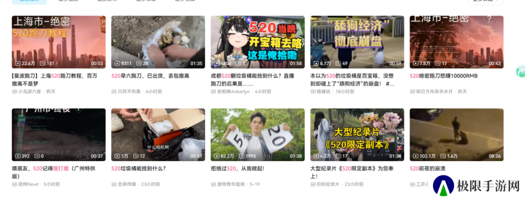 可以看到,所谓的“520搜打撤”教程,热度远没有“拒绝520”高,这也是520与舔狗经济退潮的表现之一。