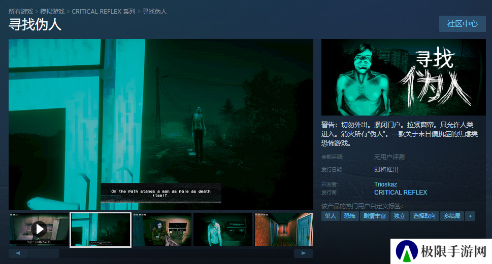 在众多的伪人游戏中,我最期待的还是这款叫《寻找伪人》的游戏,因为这个游戏整体的画风相当能给到“伪人”的氛围感,其美术风格所刻意呈现的复古感,也和伪人起源的《极度空间》所在的上世纪90年代一致,可以说是目前为止最“原汁原味”的伪人致敬之作。而游戏中通过检查牙齿,指甲,眼睛等方式来辨别伪人的办法,也相当有美式民科的风味。
