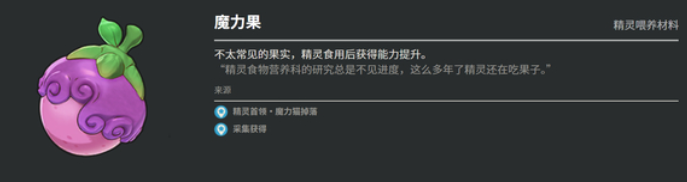 游戏中的这个魔力果是一种养成类型的道具,游戏中,大家可以来获得各种活动的奖励,都是官方送给玩家们的,如果大家想要获得这个道具,就可以通过购买月卡或者直接在商店中进行购买,都是非常不错的选择,同时还可以趁着有活动来进行完成,这个道具的作用也非常的明显,可以来增加精灵的经验值,玩家们在捕捉相关的精灵时,可以查看它的面板,会有相关的数据帮助大家更好的了解精灵的强度。