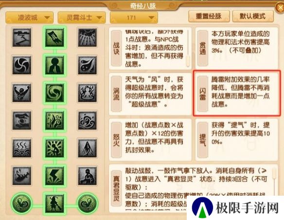 使【腾雷】的附加效果概率降低,但是【腾雷】会增加一点战意。