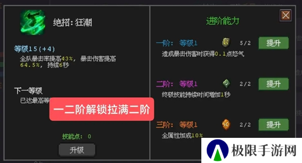 一阶爆伤加怒气,二阶全队暴击爆伤提升增加时间必须拉满!
