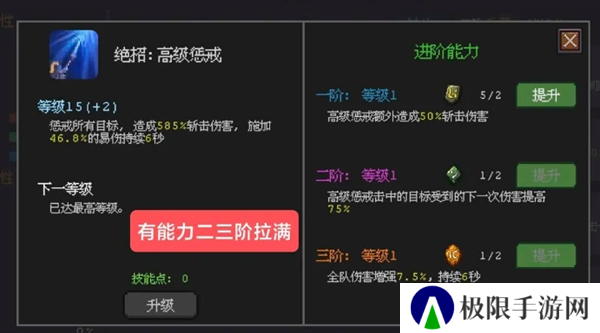 高级惩戒给敌人施加易伤,二阶也是易伤,三阶增伤。二三阶拉满!一阶解锁凑合用!