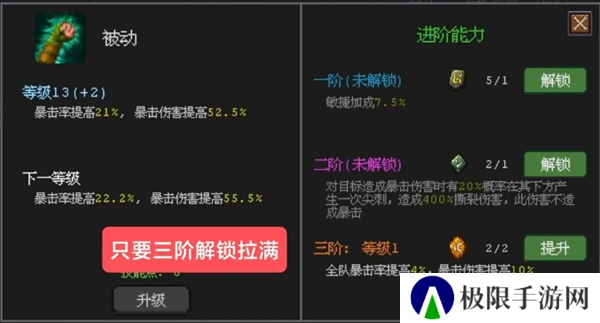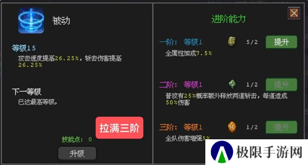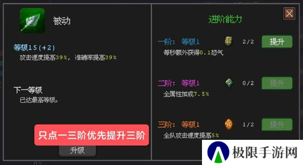 被动点一三阶,一阶解锁就行多少增加一点怒气。三阶全队提速氪佬拉满!