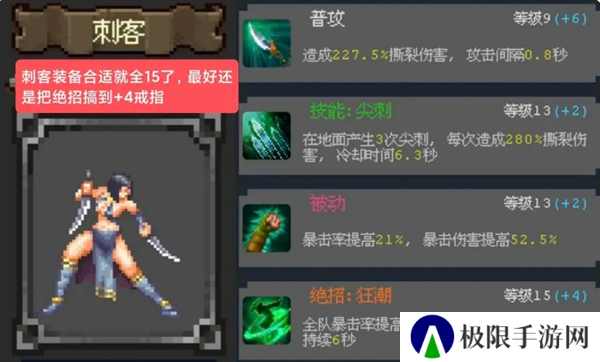装备配好竟然全15了,但是刺客主要还是把绝招搞高点,有绝招+4戒指记得带上!
